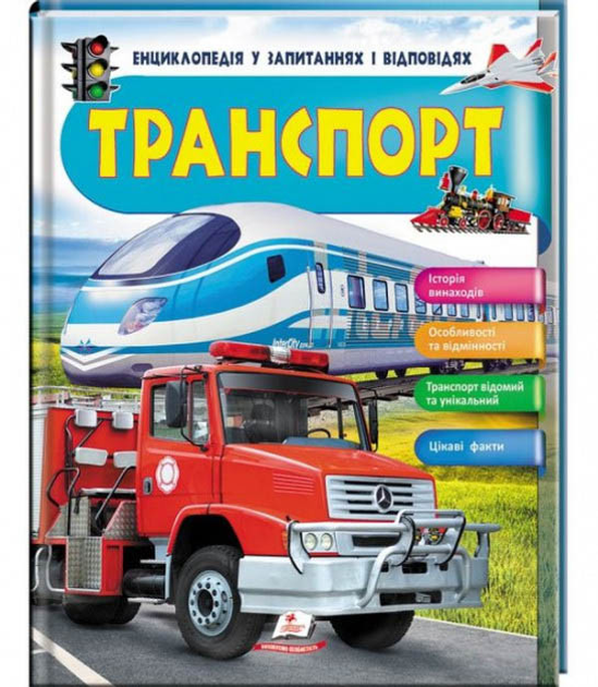 Автомобілі, мотоцикли, автобуси, тролейбуси, трамваї, потяги, яхти, лайнери, літаки, космічні шатли – транспорт такий різний. Без нього сьогодні нікому не обійтися.З чого починалася історія транспорту? Якими були дивовижні прабатьки автомобілів, старовинні велосипеди, автобуси і паровози, хто першим піднявся в повітря і опустився на дно океану? Саме про це і про багато іншого наша енциклопедія!