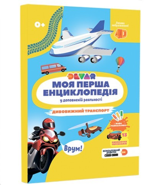 Жива енциклопедія «Дивовижний транспорт» – це квиток до справжніх пригод.Фішки: Доброзичливі персонажі книги розповідають про себе від першої особи, оживаючи в доповненої реальності, а ще ними можна управляти;яскраві, соковиті, веселі ілюстрації, які хочеться розглядати;тверда обкладинка і щільні сторінки на крейдованому папері – малюкам зручно самим тримати, гортати і розглядати книгу.В енциклопедії «Дивовижний транспорт» різні види транспорту розповідають про себе самі. Спорткар, мотоцикл, автобус, поїзд, літак, вертоліт, яхта, підйомний кран, пожежна машина, поліцейська машина, швидка допомога, танк – 12 героїв. У кожного свої таланти і своє призначення. Який автобус вміщає 300 осіб одночасно?