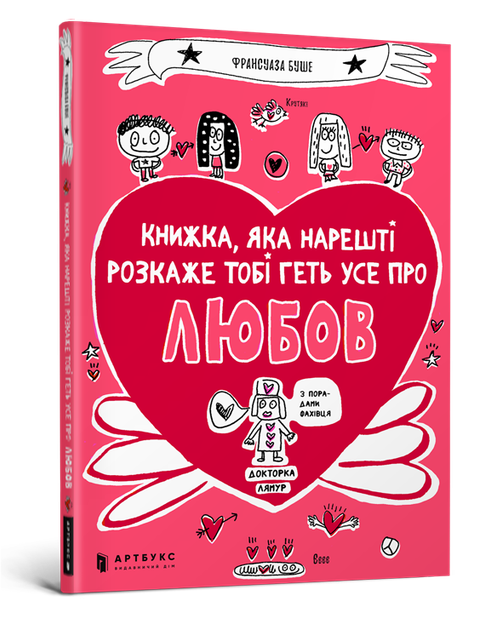 Ласкаво просимо у радісний і чарівний світ любові! У цьому світі все розквітає й надихає, дивує й змушує серце підстрибувати. Втім, іноді кохання не поспішає… до того ж, його не купиш у крамниці, а щоб почуття тривало довго, доведеться докласти зусиль. Як це — бути закоханим? Скільки триває любов? Стільки запитань, та, на щастя, Докторка Лямур із задоволенням розкаже нам геть усе про ЛЮБОВ! Для чого ми видали цю книжку: · Продовження серії книжок-бестселерів французької авторки, яку діти читають залюбки і сміються від щирого серця. · Цього разу темою розмови є “любов” в усіх її іпостасях. Кохання і закоханість, почуття та емоції, а ще любов у широкому сенсі. · Ця книжка доводить: гумор не завжди робить серйозну тему несерйозною. На її сторінках знайдеться чимало жартівливих прикладів, які проілюструють дитині вічні питання відповідальності та щирості. · Авторка легко й переконливо пояснює дітям, що перш за все необхідно навчитися любити себе. Кохання не захищає людей від непорозумінь і сварок, а мати з кимось різні смаки чи якісь недоліки — нормально. Так, кохання не завжди просте й зрозуміле. Тож кілька порад від Докторки Лямур не завадять. (Головне не забувати про виконання домашнього завдання!)