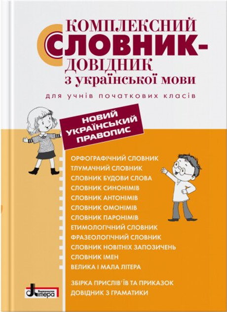 У цій книжці під однією обкладинкою зібрано словники, які стануть у пригоді молодшим школярам в освоєнні курсу української мови: орфографічний, тлумачний, будови слова, синонімів, антонімів, омонімів, паронімів, етимологічний, фразеологічний, імен, «Велика і мала літера», а також збірка прислів’їв та приказок і довідник з граматики. У виданні вміщено унікальний словник новітніх запозичень, що відображає зміни у мові, спричинені появою нових предметів і явищ у світі. Кожен словник відкривається короткою передмовою, що пояснює, як і для чого він використовується. Завдяки компактності, повноті представлення мовного матеріалу та продуманій структурі видання буде корисним не тільки у молодшій школі, а й у подальшому навчанні, а також допоможе краще опанувати українську мову усім членам родини. Словник упорядковано відповідно до змін українського правопису 2019 року.