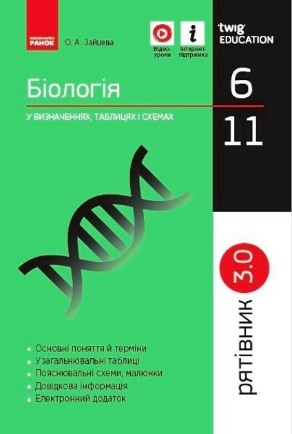 Посібник містить основний теоретичний матеріал зі шкільного курсу біології. Призначений для учнів 6-11 класів закладів загальної середньої освіти та абітурієнтів.