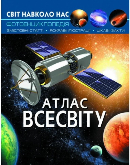 Всесвіт приховує безліч дивовижних таємниць, деякі з них ми розкриємо в цій книжці. Чому Уран та Нептун зажили слави крижаних гігантів? Яку планету називають близнючкою Землі? Чи зможе колись людина стати на поверхню Сатурна? Відповіді на ці запитання ви дізнаєтеся, ознайомившись із нашим атласом. Розміщені в ньому яскраві ілюстрації допоможуть зробити занурення у світ космосу більш яскравим і реалістичним.Книжку адресовано допитливим дівчаткам і хлопчикам, а також їхнім турботливим батькам.