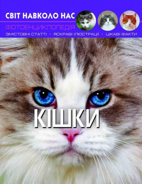 Сьогодні, за різними підрахунками, у світі налічується від 100 до 700 порід кішок. Інформацію про найвідоміших із них подано в цій енциклопедії. Вона містить короткий опис вусатих улюбленців, включаючи їхні звички. На сторінках видання ви знайдете цікаві факти про життя кішок і дізнаєтеся про рекорди, поставлені цими дивовижними тваринами. А розміщені в книжці яскраві фотоілюстрації допоможуть скласти уявлення про зовнішній вигляд і вдачу вусатих мурчиків. Книжку адресовано допитливим дівчаткам і хлопчикам, а також їхнім турботливим батькам.