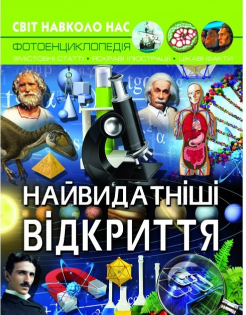 Хто насправді відкрив Америку та чи дійсно Менделєєв побачив таблицю хімічних елементів уві сні? Кому ми завдячуємо зникненням епідемій чуми й віспи та як учені дізналися про існування таємничих невидимих променів? Відповіді на ці та інші запитання, пов’язані з найвидатнішими відкриттями в історії людства, ви знайдете на сторінках нашої книжки. Для наочності тексти проілюстровано репродукціями картин, яскравими фотографіями й простими схемами. Книжку адресовано допитливим підліткам і дорослим.